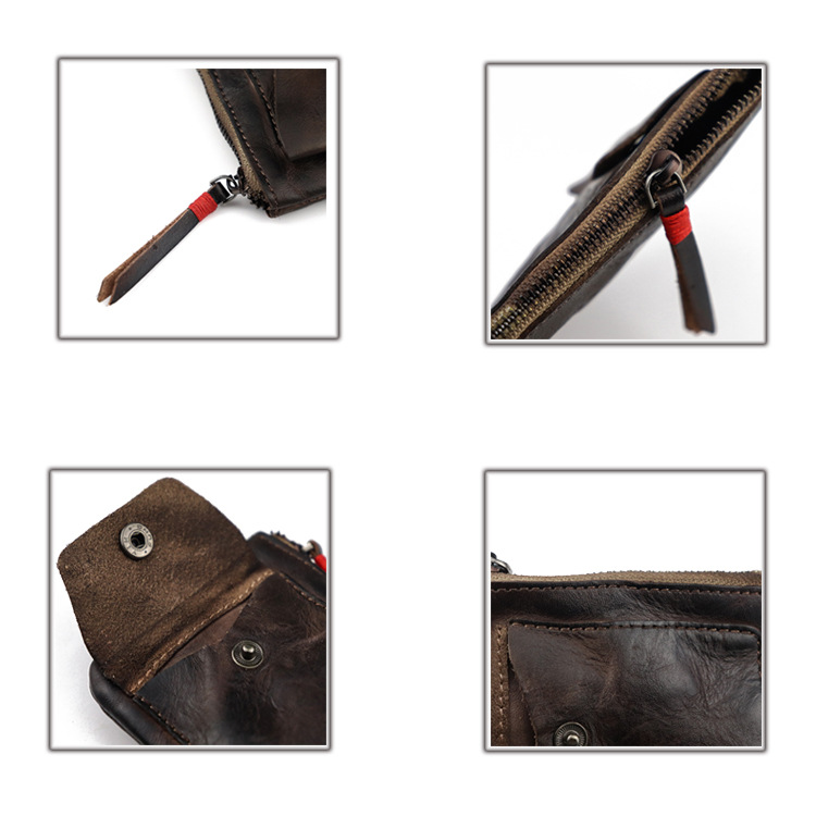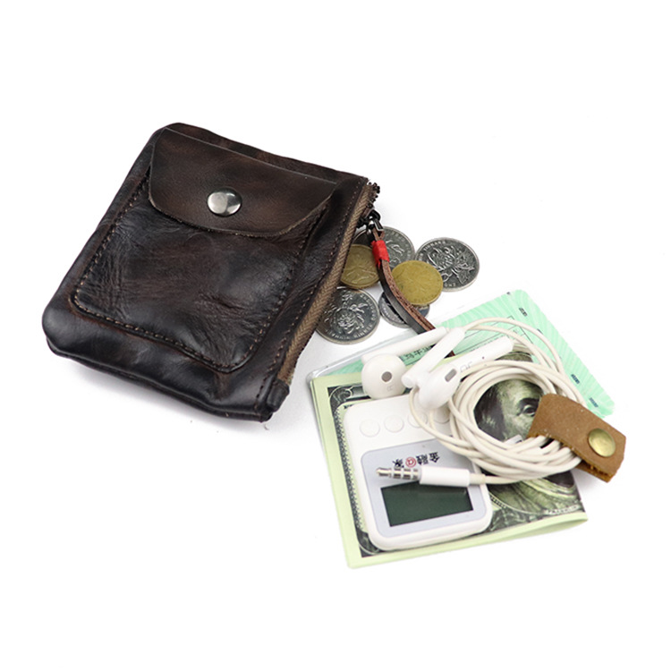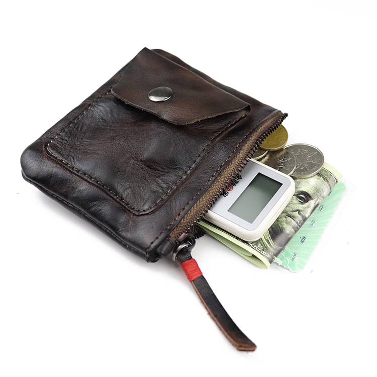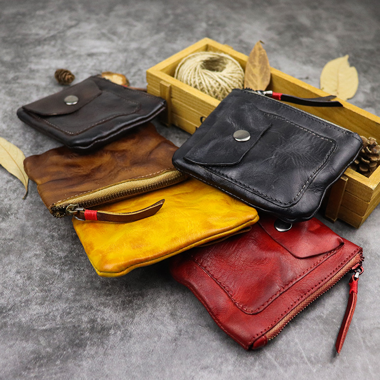 Genuine leather zipper thin simple pleated coin purse card holder