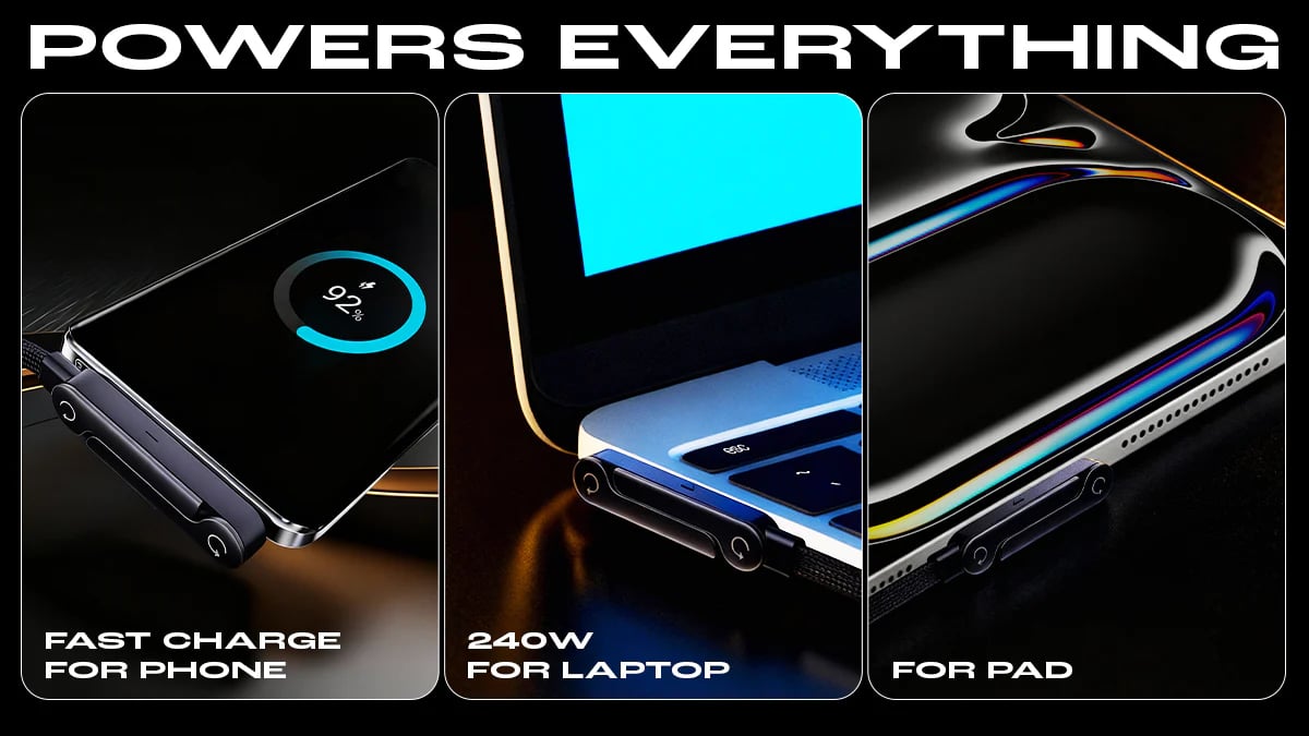 📱240W Braided Fast Charge Cable With Built-in Phone Stand
