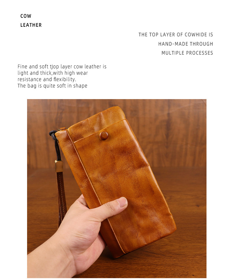 New top layer cowhide handmade long wallet